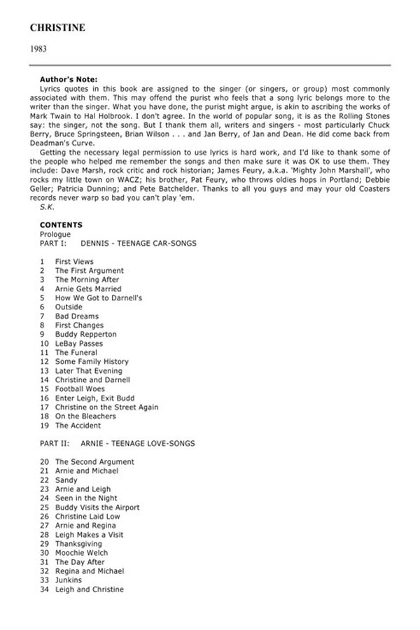 It had been love in the beginning look. As soon as seventeen-year-old Arnie Cunningham noticed Christine, he realized he'd do anything to own her. But Christine isn't any woman. She's Stephen Kingis supreme, blackly bad automobile of horror.