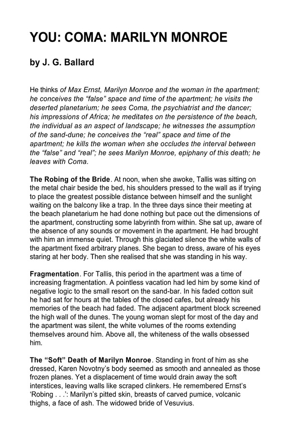 J. G. Ballard - You; Coma; Marilyn Monroe [ss]