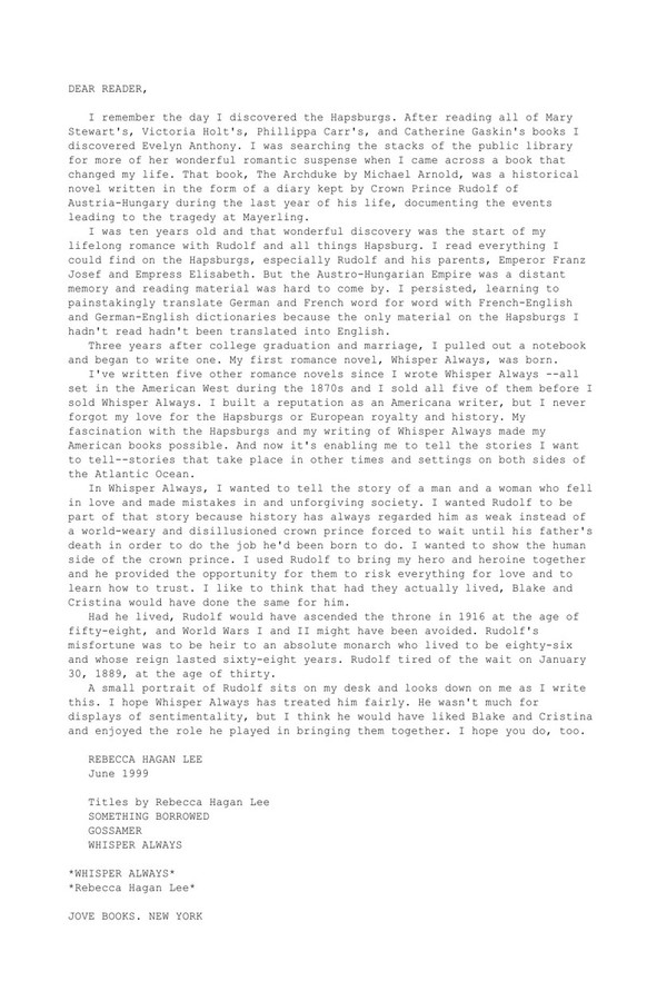 Lee Rebecca Hagan-Whisper Always